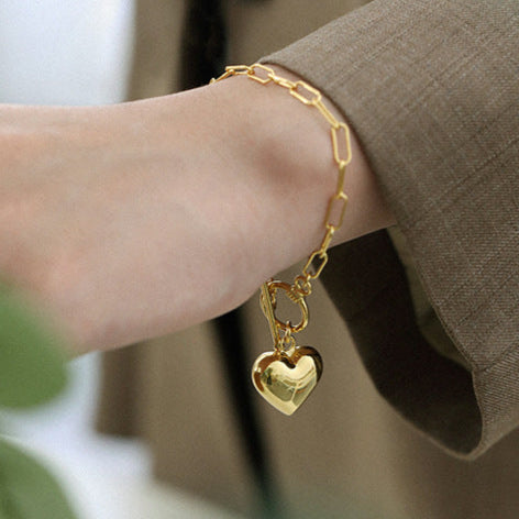 Girl Hollow Chain Heart 925 Sterling Silver Bracelet