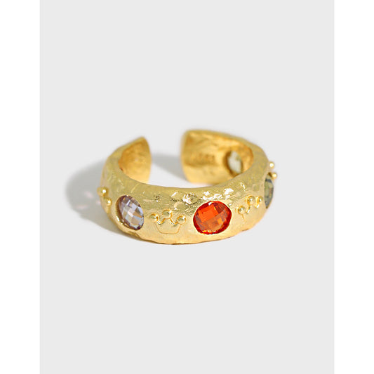 925 Sterling Silver Fashion Colorful Irregular CZ Adjustable Ring