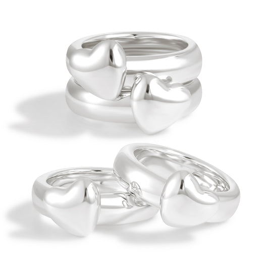 999 Sterling Silver Golden Double Layer Girl Elegant Heart Stacking Rings