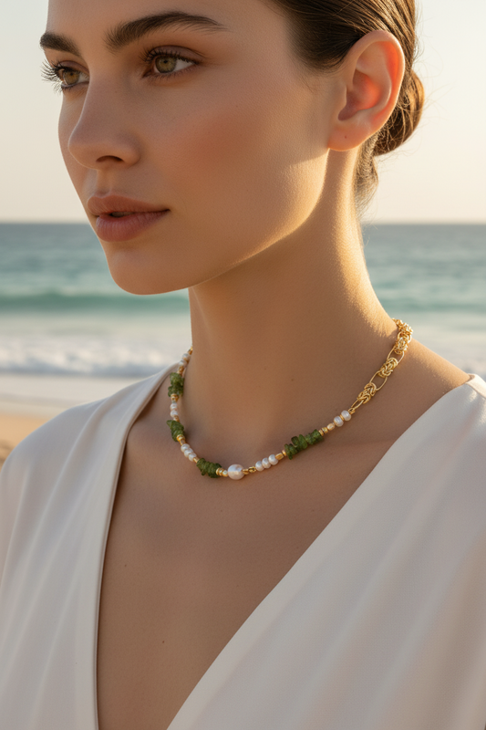 Natural Pearl Peridot Sweet Patchwork Necklace, 18k