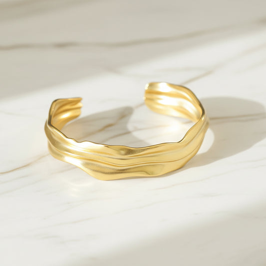 Make a bold statement with this Stunning Large Irregular Folds 925 Sterling Silver Open Bangle