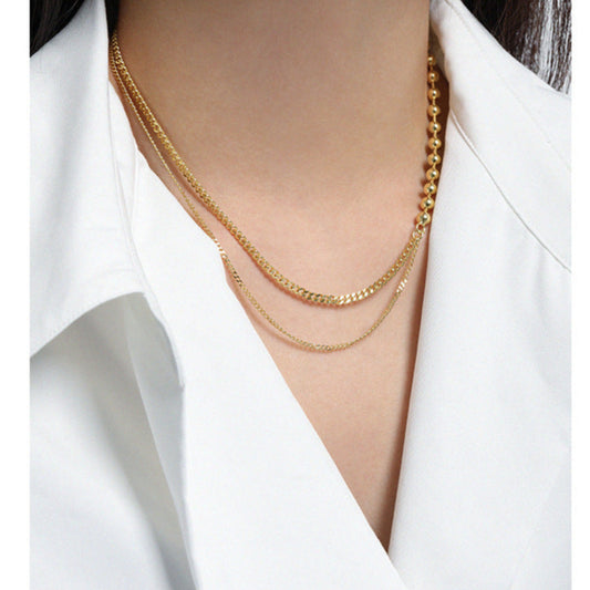 Fashion Asymmetry Beads Chain 925 Sterling Silver Necklace