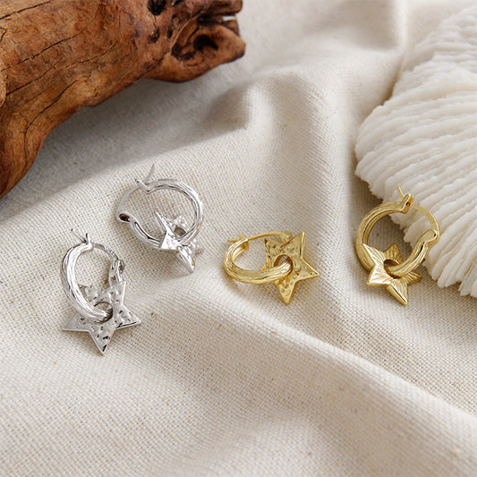 Girl Sweet 925 Sterling Silver Electroforming Star Hoop Earrings