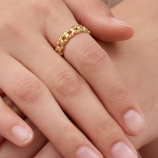 Fine Jewellery 925 Sterling Silver Yellow Gold Curb Chain Ring