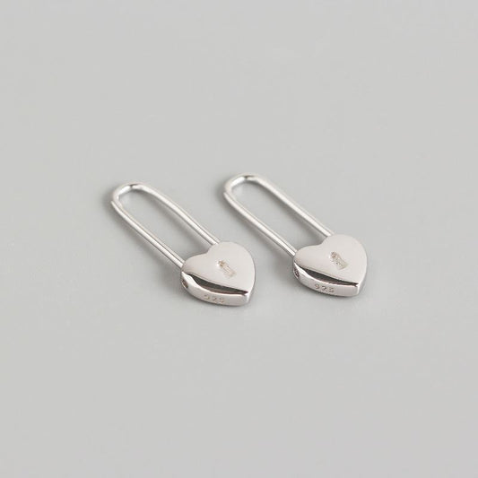 Fashion Heart Lock 925 Sterling Silver Hoop Earrings