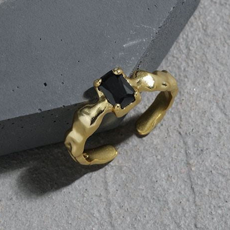 Fashion Irregular Black Geometry CZ 925 Sterling Silver Adjustable Ring