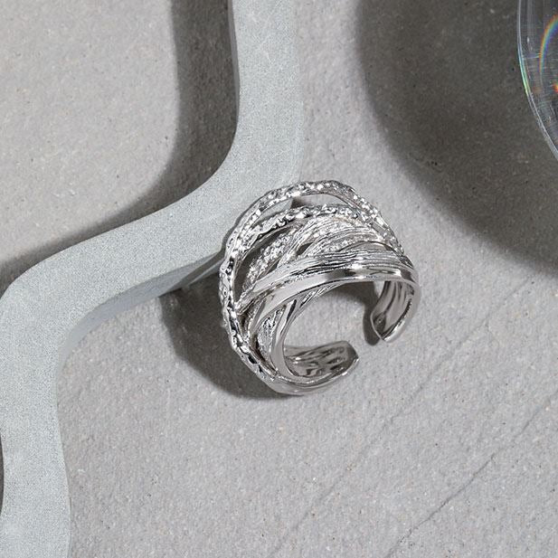 Chunky 925 Sterling Silver Fashion Irregular Lines Cross Wide Adjustable Ring