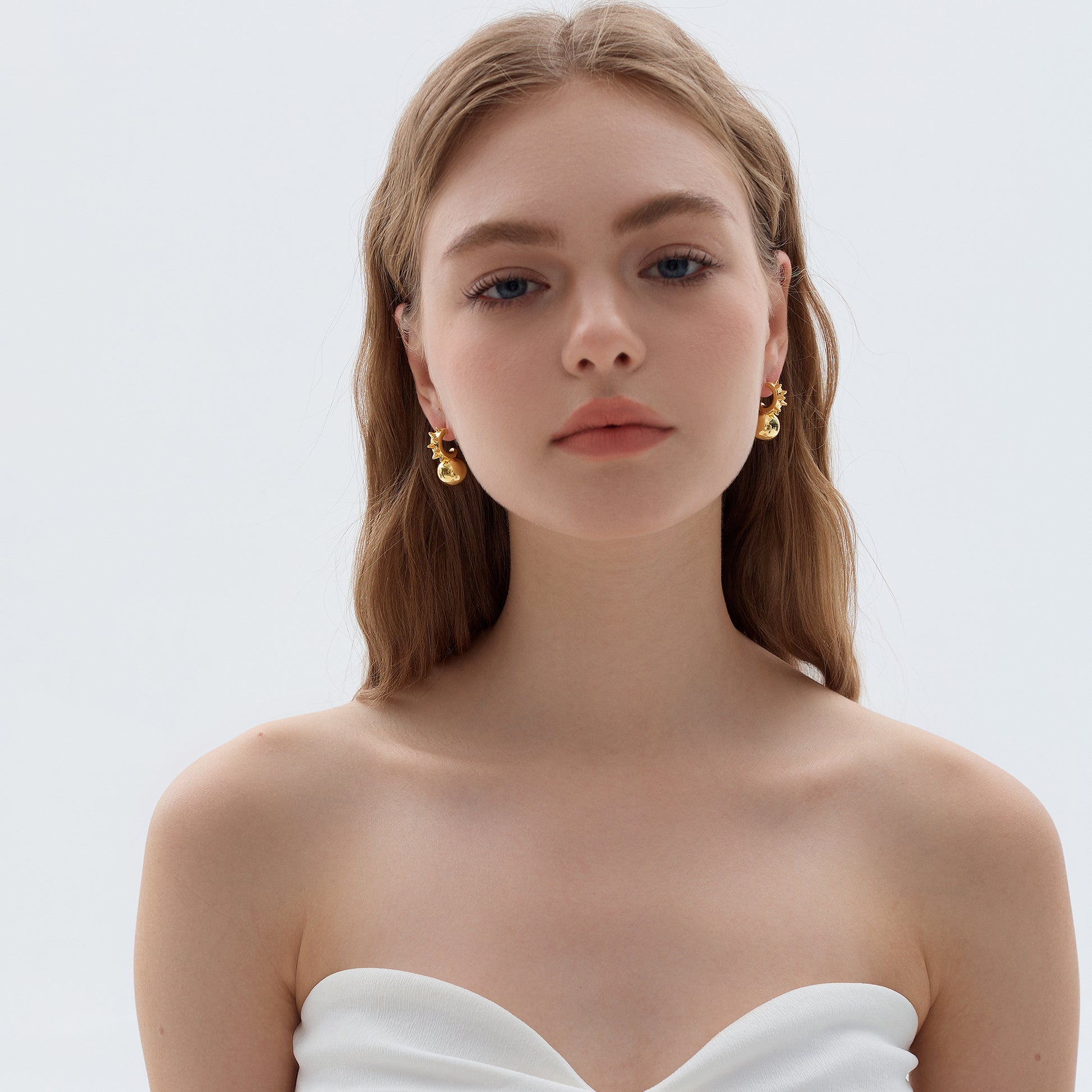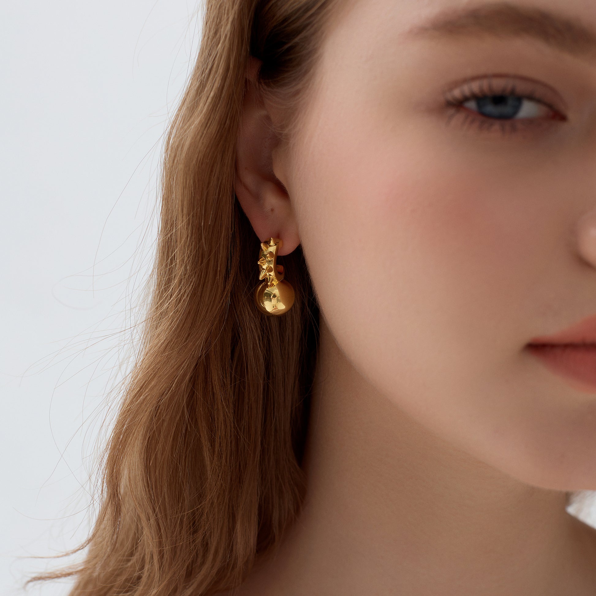 999 Sterling Silver Chunky Hollow Light Large Round Ball Statement Stud Earrings