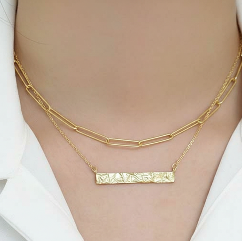 Hammered Rectangle Tag Bar 925 Sterling Silver Necklace, 18k gold/Rhodium