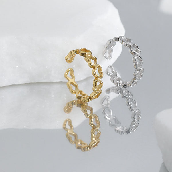 Dainty 925 Sterling Silver Girl Hollow Hearts Hot Adjustable Ring