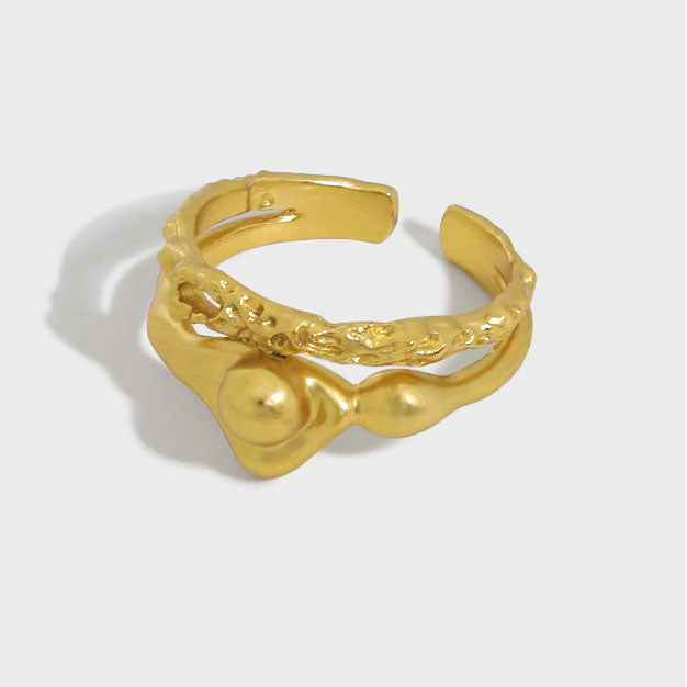 Irregular Hollow Beads 925 Sterling Silver Adjustable Ring