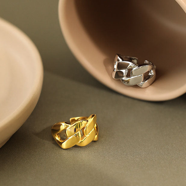 Modern Thick Hollow Chain 925 Sterling Silver Adjustable Ring