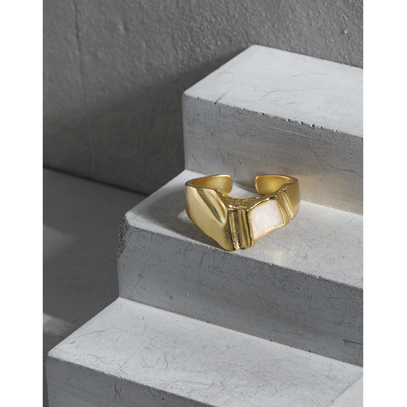 Party Irregular Epoxy Rectangle 925 Sterling Silver Adjustable Ring