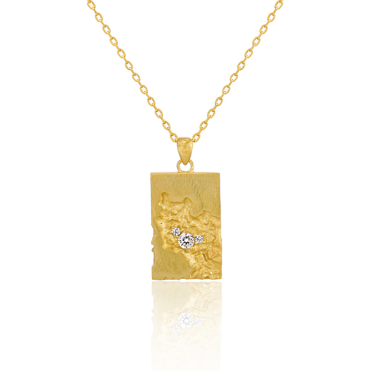 Unique Hammered Name Tag Silver 925 Sterling Silver and Gold Pendant Necklace