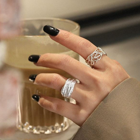Vintage Irregular Wide Branch Texture 925 Sterling Silver Adjustable Ring