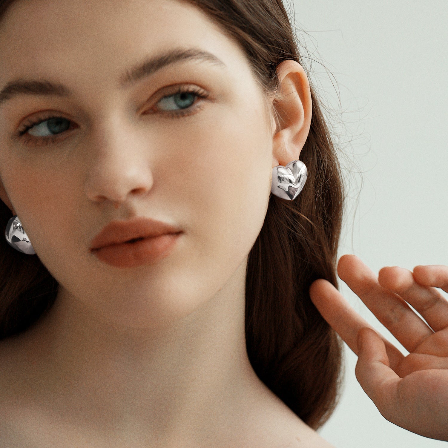 Stunning Romantic Gift 999 Pure Silver Big Heart Honeymoon Statement Stud Earrings